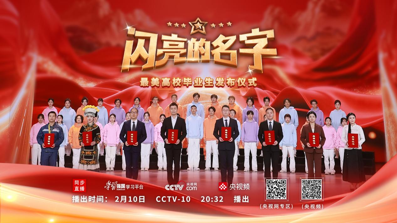 《闪亮的名字-最美高校结业生发布典礼》将正在地方电视总台央视科教频道(CCTV-10)2月10日20!32。期间央视频、进修强国。